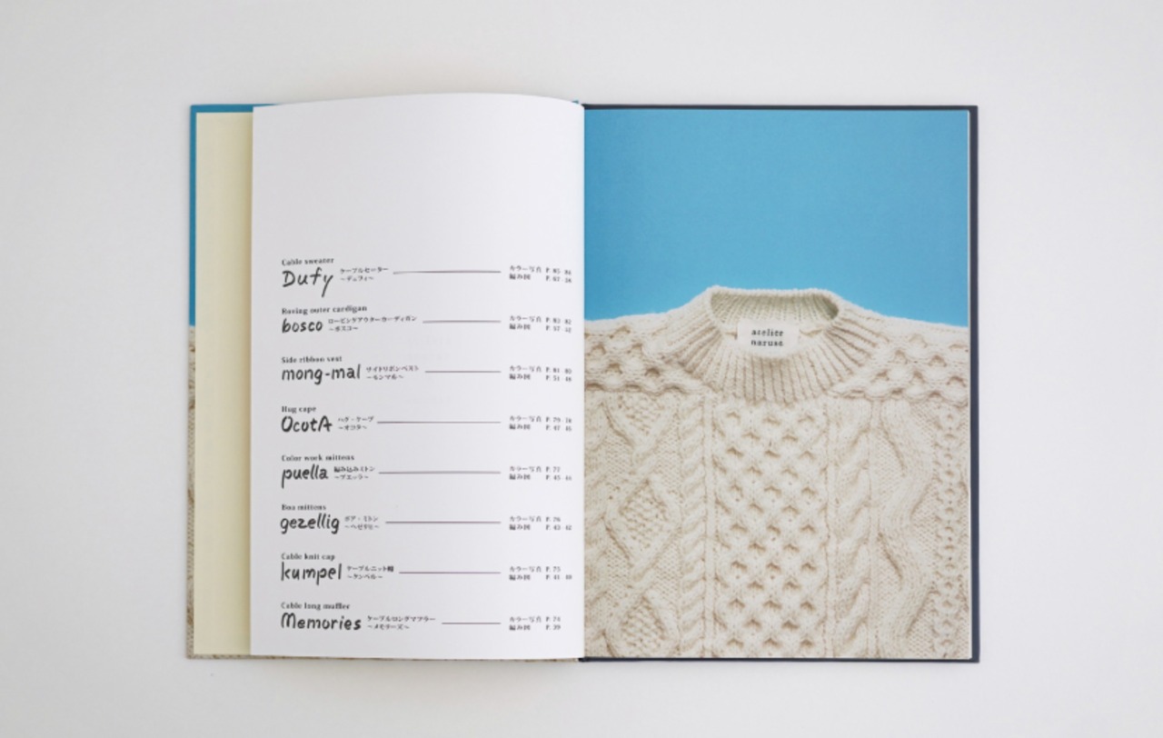 2020年から始まったアパレルブランド atelier naruse(アトリエナルセ)とのコラボニット企画。 自然体で飾らない女性をイメージさせるアトリエナルセらしいデザインを、DARUMAがニットに落とし込むという共同作業を繰り返し、5年間にわたり毎年1,2点ずつを発表してきました。 この期間に発表された全アイテムが1冊の本に集約された、5年間の集大成ともいえるニットパターンブックです。