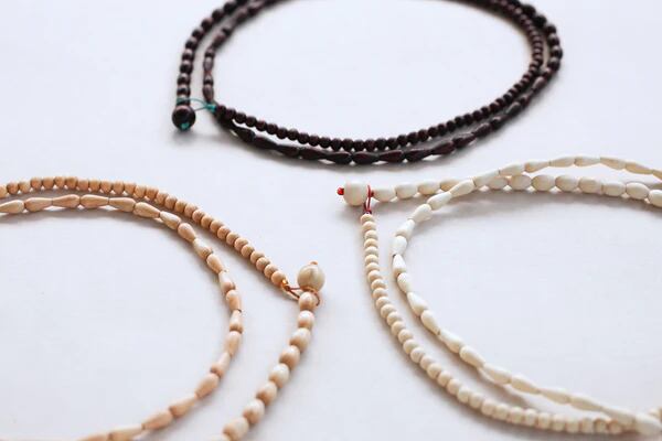 3種類のウッドビーズを通すだけでつくることができるネックレスです。同じかたちを連続で通したり、ランダムに通したりとアレンジも楽しんでいただけます。120cmまで調節できるので、お好みの長さに仕立てることも。2重なら90cm、3重にするなら120cmがおすすめです。