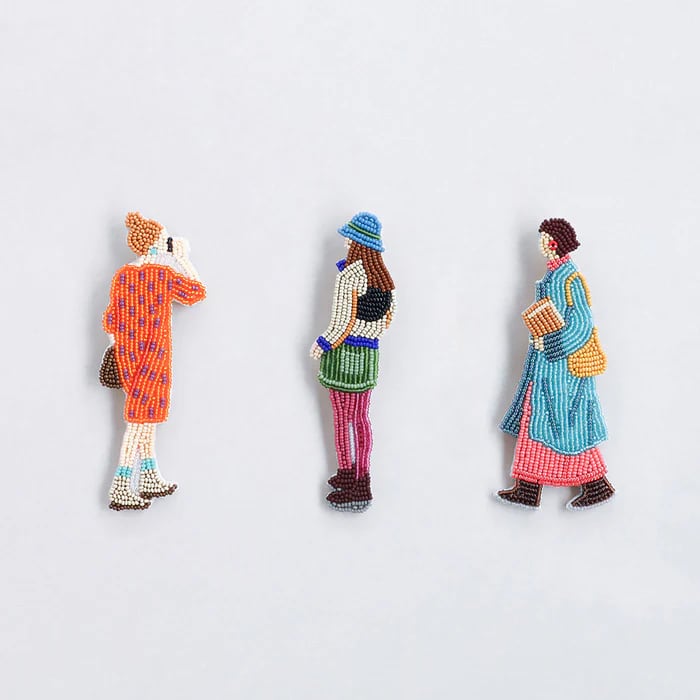 おでかけのワンシーンを切り取ったような、ビーズブローチ。