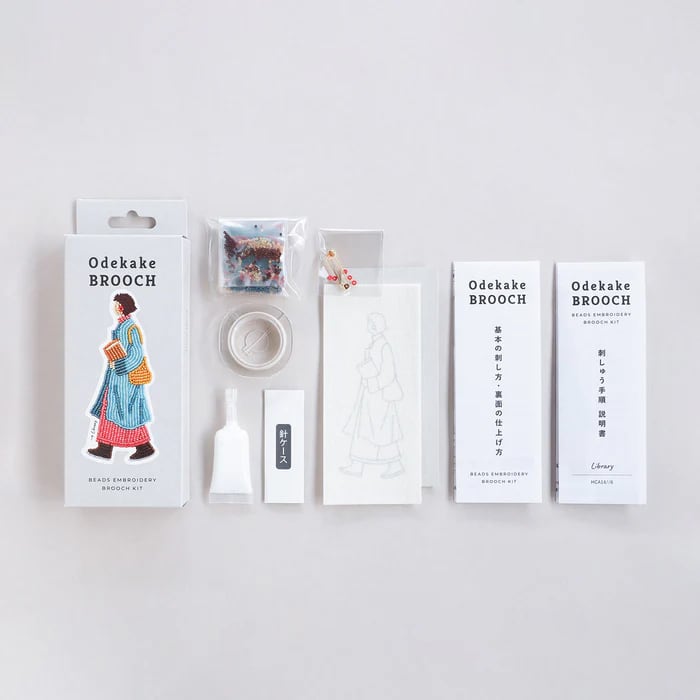 主要内容物:ビーズ、フェルト、裏布、ブローチピン、糸、接着剤、刺しゅう糸、説明書