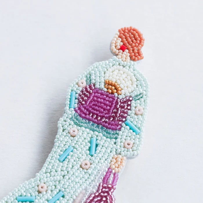 おでかけのワンシーンを切り取ったような、ビーズブローチ。