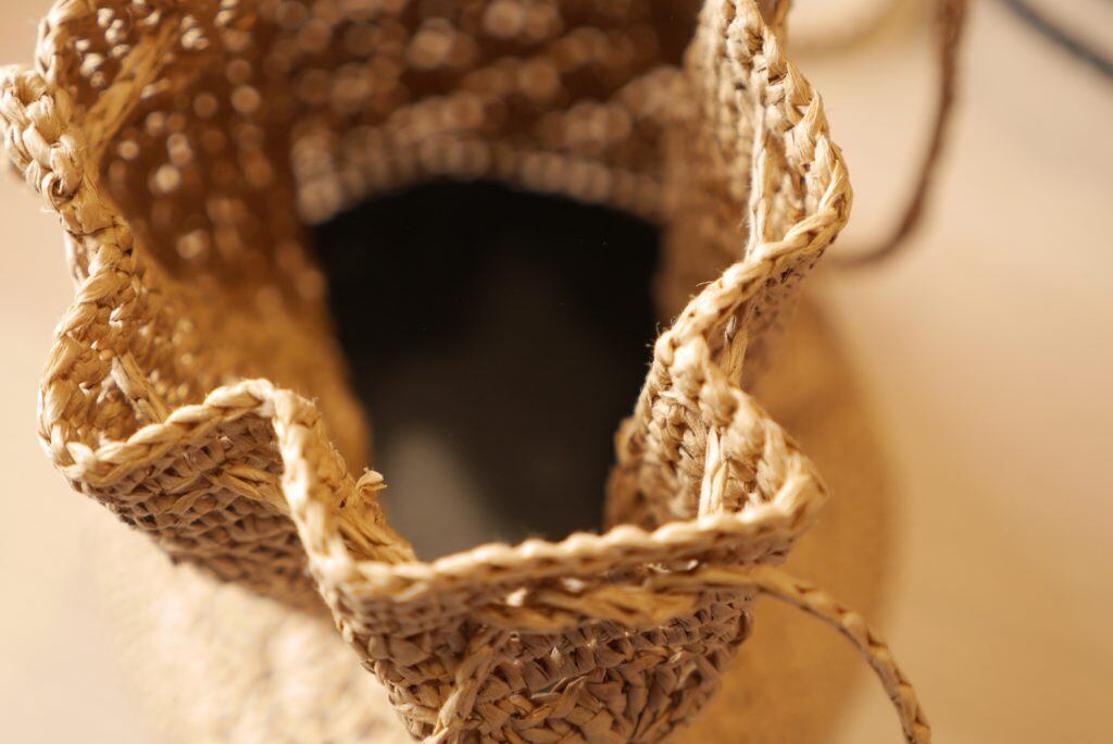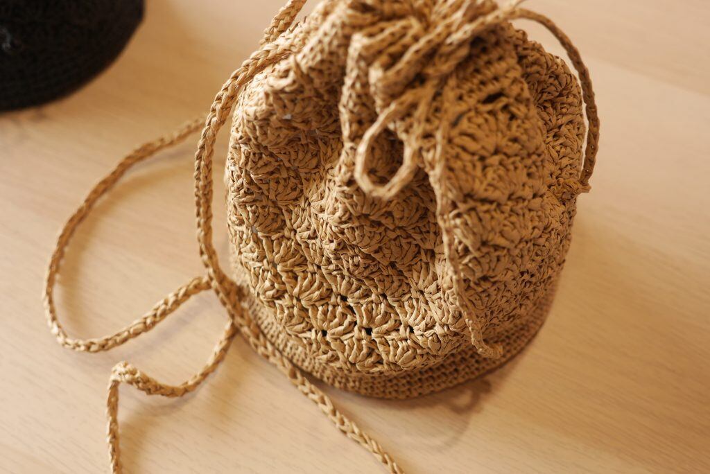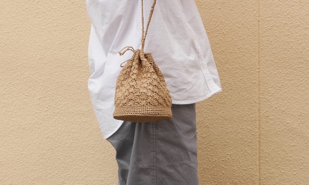DARUMA SASAWASHI FLAT で編むポシェット(編み物キット)です。