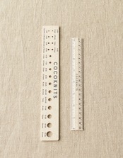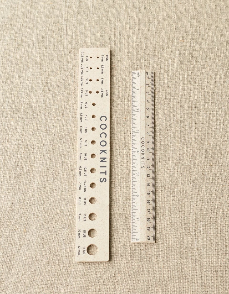 かわいくておしゃれな編み物道具を製作しているCocoknitsさんのマグネットが埋め込まれた「物差し」と「ニードルゲージ」のセットです。