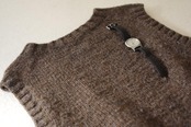 広島在住の編み物作家、HOLY’S 保里尚美さんが制作する「働くセーター」シリーズの新作、「働くクルーネックベスト」の編み方リーフレット。