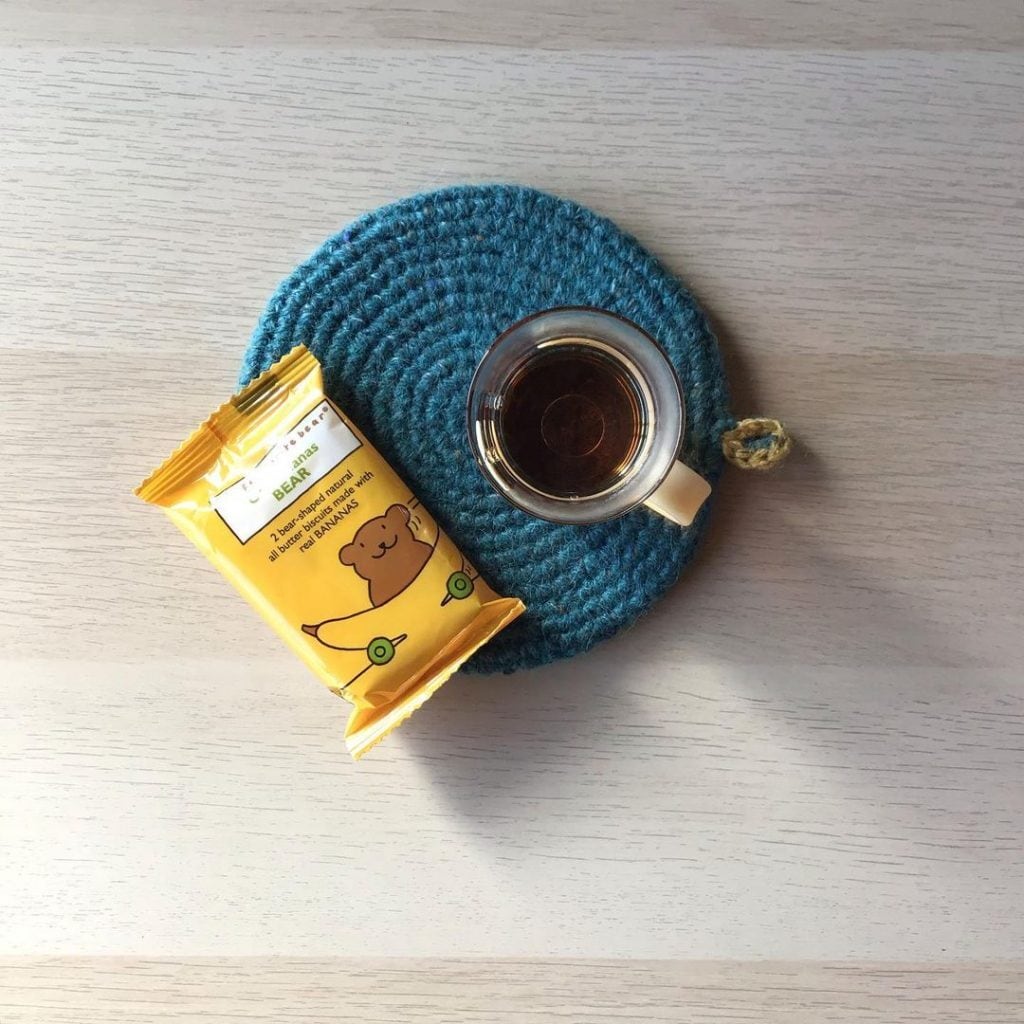 イギリスのROWAN Felted Tweedで編む、オリジナル編み物キットPot Mat です。