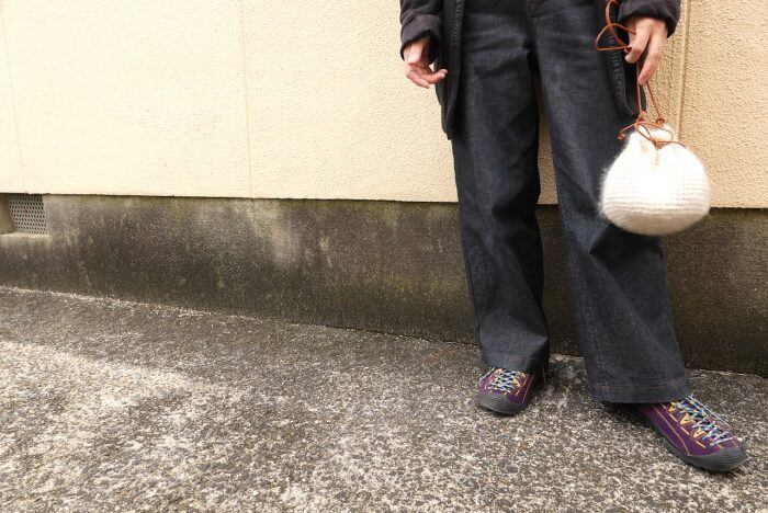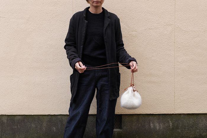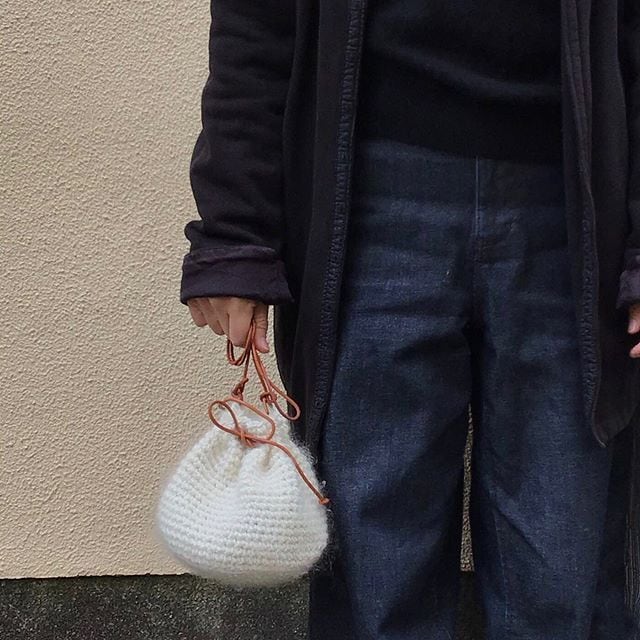モヘアで編むポシェットです。