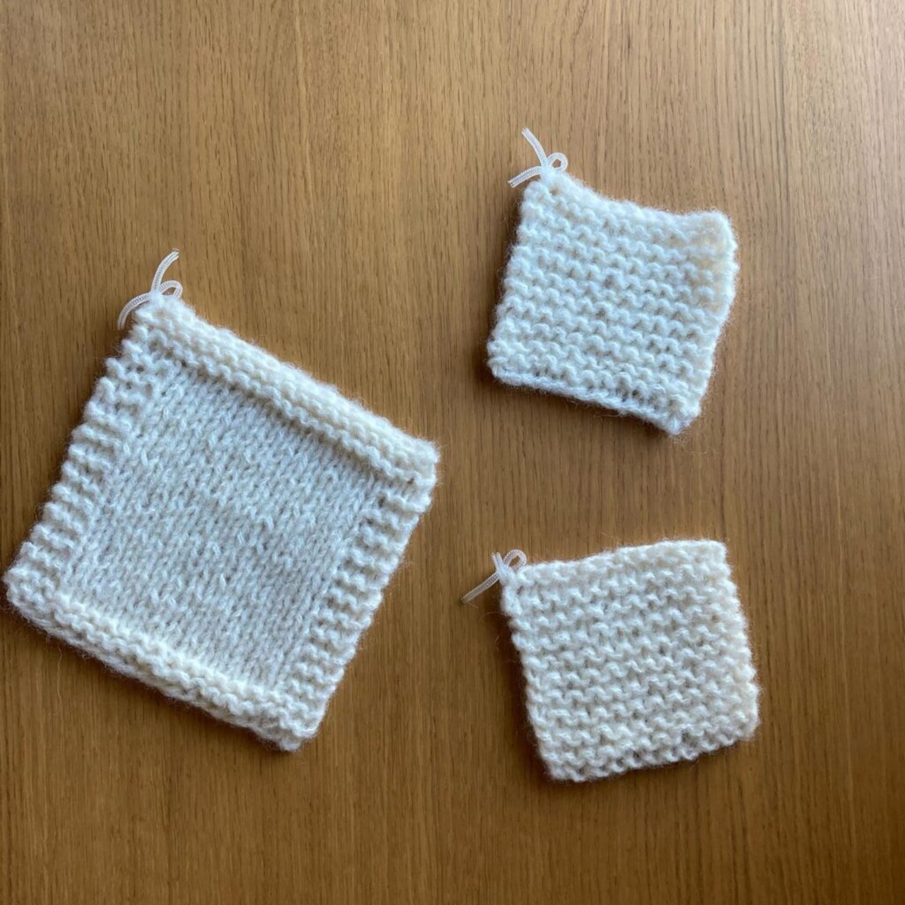 基本の編み方、表編みと裏編みを練習できるキットです。